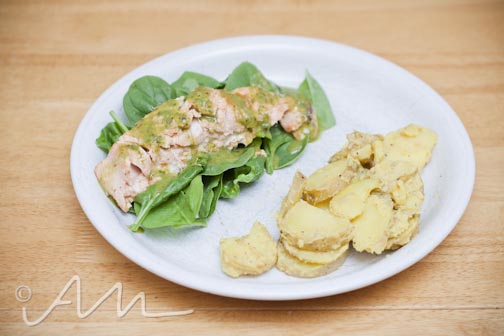 {thirsty thursday} — wild-caught king salmon dressed in basil vinaigrette w/ a rye lager