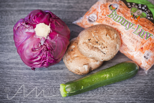 {meatless mondays : colourful roasted mushrooms w/ veggie ribbons}