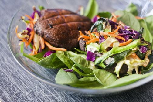 {meatless mondays : colourful roasted mushrooms w/ veggie ribbons}