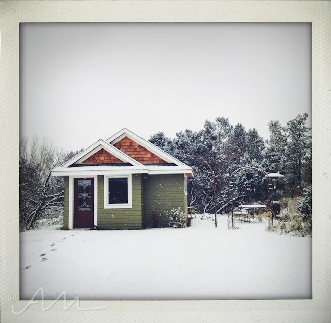 {season’s first snowfall on the tiny house}